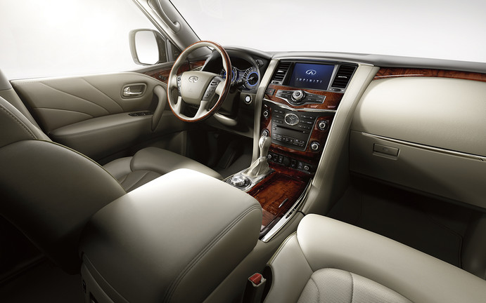 Wewnątrz Infiniti QX80 znajdują się trzy rzędy skórzanych foteli, które można regulować w różnych kierunkach i które są wyposażone w specjalne podparcie odcinka lędźwiowego. Wszystko to sprawia, że w samochodzie można spędzić wiele godzin bez uczucia zmęczenia czy dyskomfortu. Jeśli chodzi o wyjazdy zimowe, tutaj również jest to zapewnione w postaci podgrzewanych foteli.